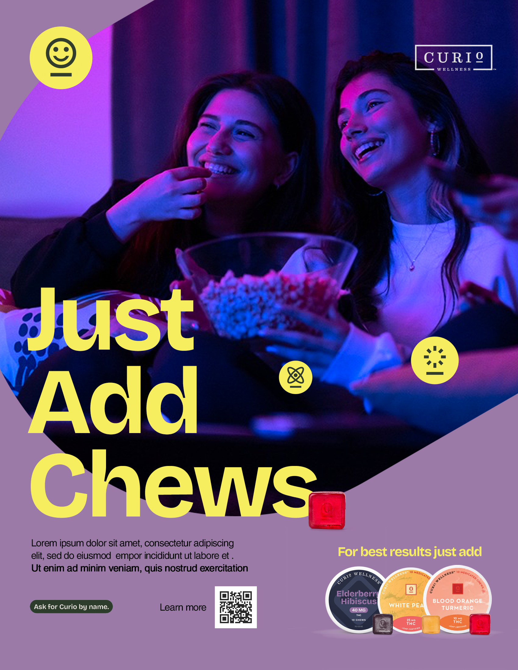 We aligned with the Curio team on a single powerful platform: For Best Results, Just Add Chews. A campaign that makes the product feel personal, flexible, and fun, while still nodding to Curio’s trusted formulations behind the scenes. It gave us permission to speak to modern adults who want to feel a little better (or a little more) in all the moments they choose to use Chews.