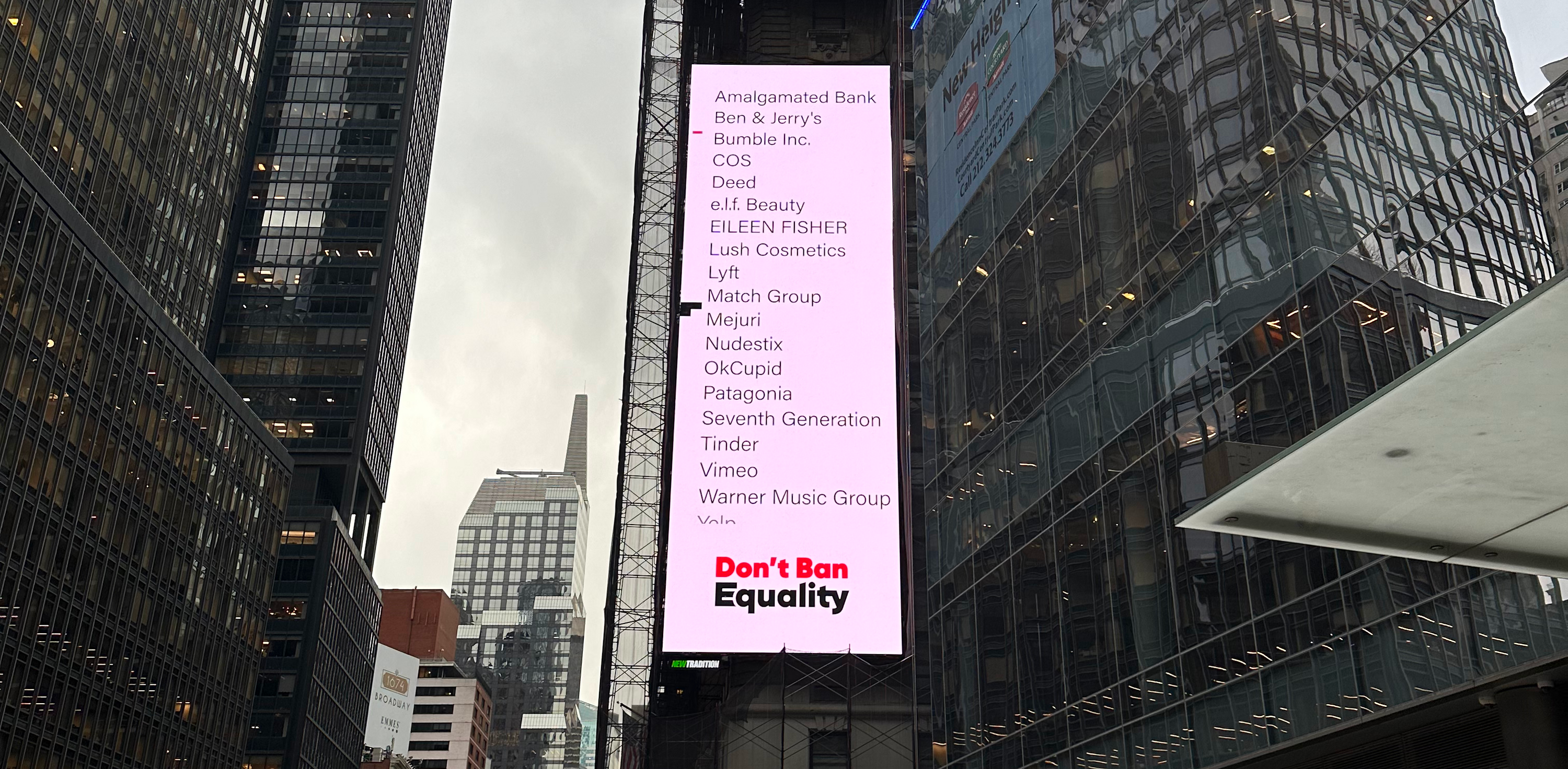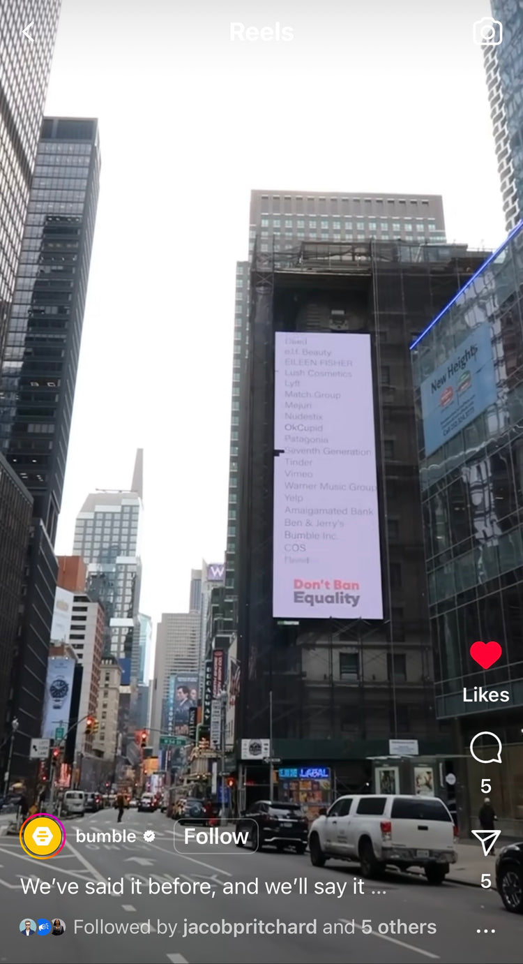 Through initial conversations with stakeholders, we gained better understanding of Don’t Ban Equality’s mission and the brands in their coalition who were eager to participate in the campaign. We identified the brand roster as a key advantage and developed a strategy to showcase the top brands in the coalition.
