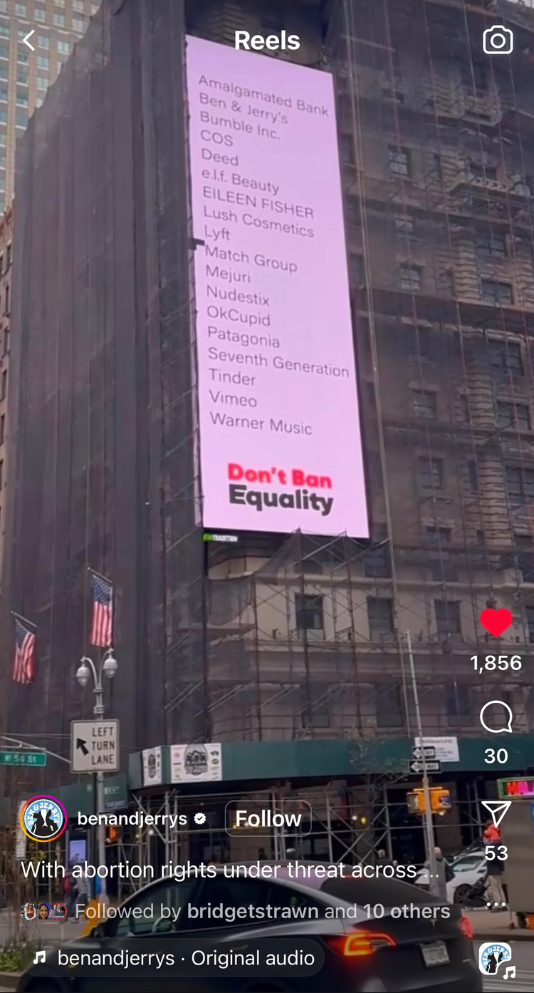 Along with the DBE team, we chose a winning idea, a simple but provocative quote, “Access to abortion is every business’s business,” that would be signed off by the coalition’s featured brands. We mocked up the idea for partner approval.
