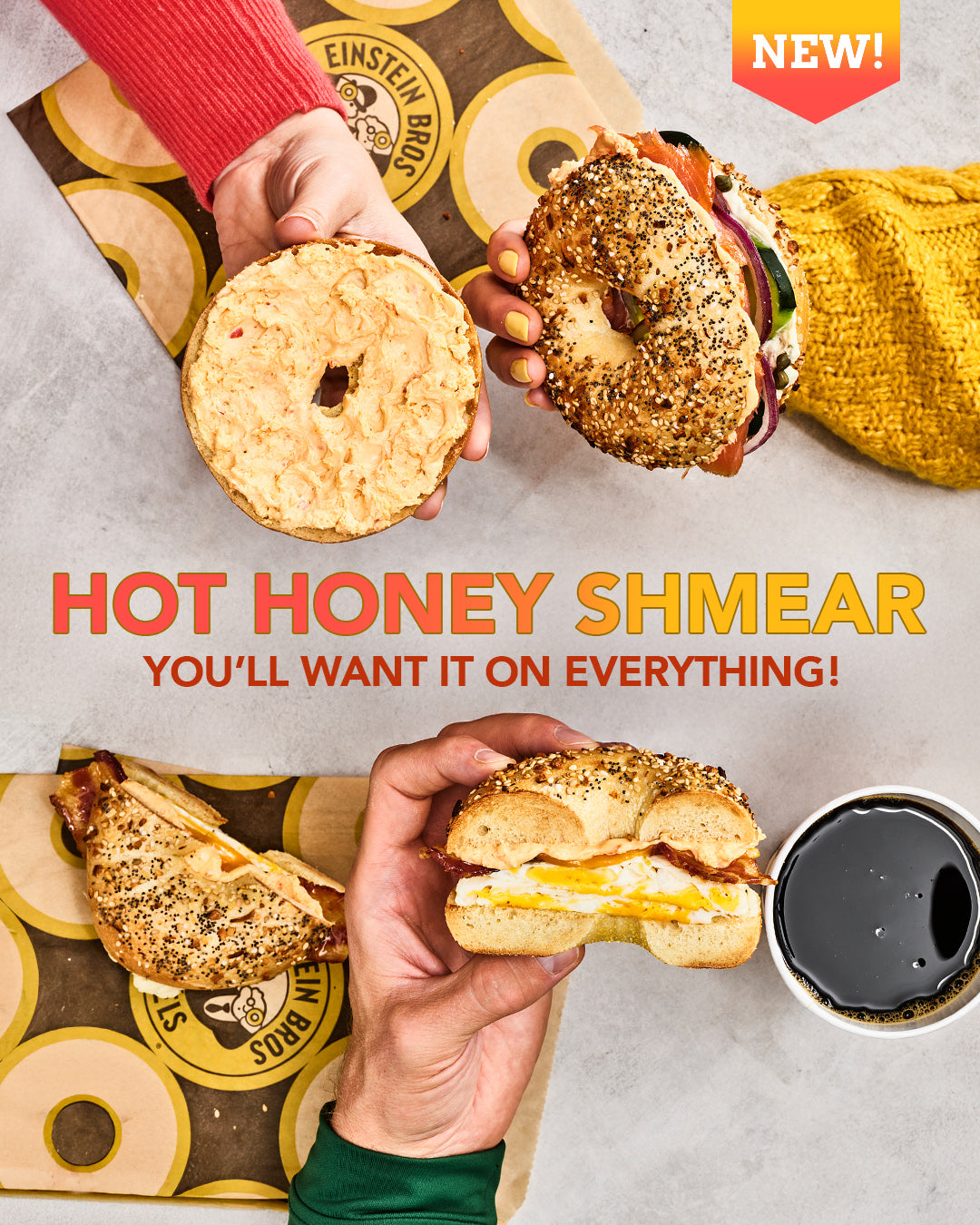 We explored dozens of ways to elevate each moment: from punchy value campaigns that felt fresh instead of coupon-y, to National Bagel Day stunts designed to dominate the feed, to unexpected takes on hot honey shmear that brought new life (and new fans) to the brandβs most iconic pairing, and proving that the middle of the road doesnβt have to feel mid.